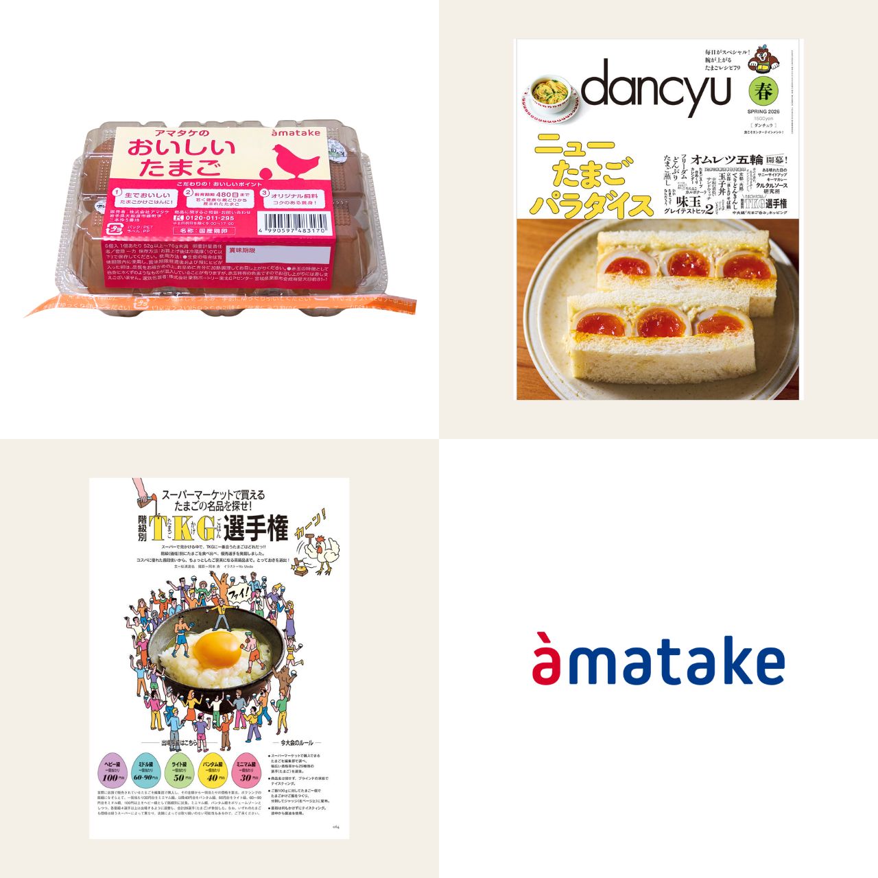 2026年3月6日発売の料理雑誌『dancyu』春号の特集ページ「TKG(たまごかけごはん)選手権」において、「アマタケのおいしいたまご」が優秀商品として紹介されました。